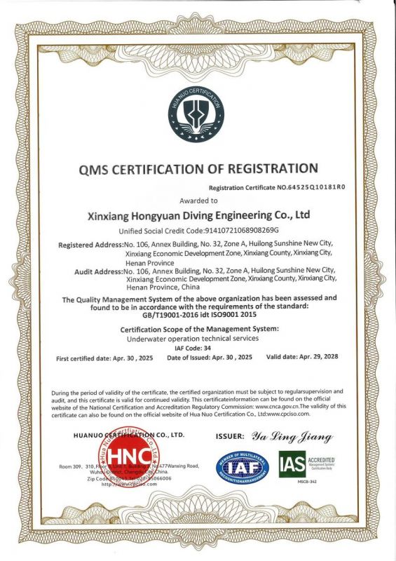 新鄉市鴻源潛水工程有限公司,有從事潛水行業二十多年的潛水團隊。公司具有獨立法人資格,注冊資金600萬元。   公司的潛水人員、潛水檢測人員、潛水焊接人員均經過正規培訓,全部持有國內權威機構頒發的資質證書。我公司水下焊接可靠,質量優良,技術過硬,可水下焊接鋼管樁,水下焊接犧牲陽極鋅塊,水下焊接連接梁,水下封堵焊接等等施工,報價合理,拒絕暴利,竭誠為您服務!水下電焊工程,水下電焊報價合理水廠電廠的水池、水道清淤、泵房清理、管道鋪放、攔污柵清污、更換閘門起落、導流洞、水庫壩體等維修施工水下補強加固:對水利電力系統水庫、大壩及沿海內河港口、碼頭等水工建筑物水下鋼結構或混凝土結構缺陷進行。無論是對現在或將來,都將是一項非常有意義的工作。水下焊接將成為水下作業,水下安裝,水下維修等水下作業工程中不可或缺的重要工藝手段.公司堅持“先進的技術設備.優質的服務質量.服務效率.熱情的服務態度,為生產經營理念,以拒絕暴利合理收費為原則立足全國市場。我們將以優質的產品與售后服務來打造用戶良好體驗。愿同新老客戶竭誠合作、互惠互利、共創輝煌!水下電焊工程,水下電焊報價合理,鋼圍堰清淤公司鴻源-水下電焊工程,水下電焊報價合理,鋼圍堰清淤公司,水下電焊工程。      新鄉市鴻源潛水工程有限公司我公司成功打造鴻源優質服務。公司的潛水人員、潛水檢測人員、潛水焊接人員均經過正規培訓,全部持有國內權威機構頒發的資質證書。經過多年經營,公司具備公司具有獨立法人資格。